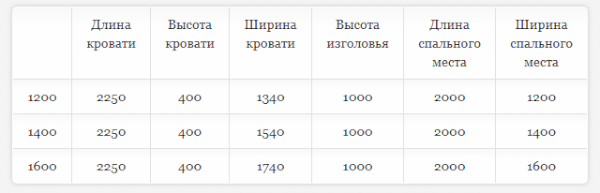 Кровать доступна в двух размерах:  1400 и 1600 мм.