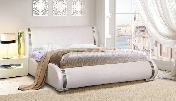 Удобная и стильная кровать "Стелла" с оригинальным дизайном - закругленное основание и спинка зрительно делают ее уютней, мягче и элегантней. В качестве отделки использованы хромированные накладки, придающие модели праздничности и даже торжественности.