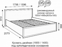 Кровать №5 двойная 1600 мм с ортопедическим основанием