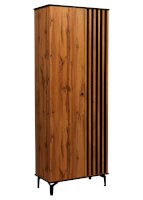 Торцы сверху и снизу покрыты черной пленкой и удачно гармонируют с реечным фасадом. Черные рамки подчеркивают границы шкафа. Внутренние полки и дверцы изнутри также выполнены в черном цвете. Таким образом достигается постоянный контраст, что выглядит очень эффектно!