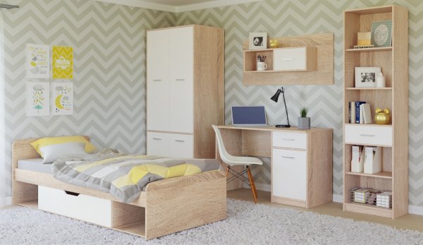 Кровать Стелс со скругленными изголовьем и спинкой имеет открытые ниши для хранения и большой ящик для белья, с помощью множества роликов его легко выдвинуть. Для безопасности и удобства открывания выдвижной ящик вместо ручек оснащен выемками на лицевой части фасада. Пользоваться кроватью может взрослый и ребенок любого возраста, так как она имеет размеры стандартной кровати 90х200см, устойчивую конструкцию и нейтральный для интерьера цвет. Идеально компонуется со всеми модулями системы Стелс. Мебель выполнена из высококачественных экологичных материалов.