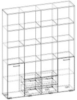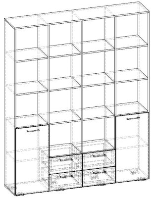 Применение задней стенки из ЛДСП (в ячейках с ящиками и фасадами) позволяет использовать данный стеллаж для зонирования пространства (чтобы предотвратить опрокидывание, необходимо обеспечить крепление стеллажа к стене).