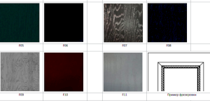 Цвет нижних фасадов: F05 (синий дип), F06 (альберо ночи), F07 (дуб серебро графит), F08 (дуб серебро синий), F09 (дуб серебро белый), F10 (альберо россо), F11 (айс)