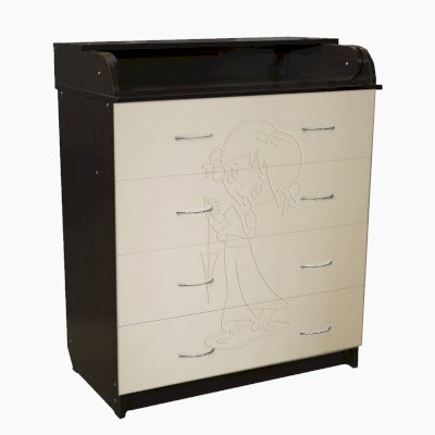 Вам понравится привлекательный внешний вид детского комода. На его лицевой части вы увидите углубленный декор в виде девочки.
