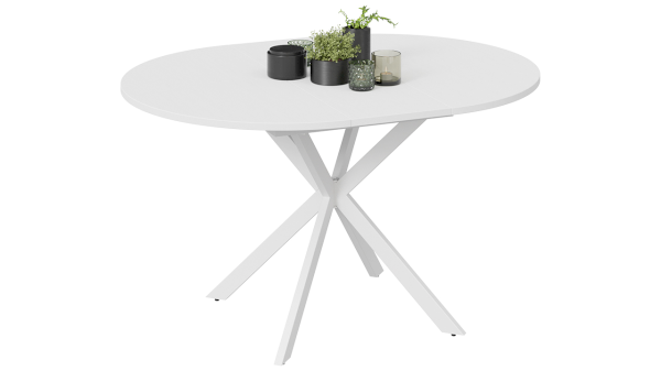Круглый обеденный стол на перекрещенных ножках смотрится изящно, лаконично и ненавязчиво в любом интерьере. Столешница выполнена из ЛДСП 22 мм. Яркая особенность новинки — это опоры из металла, которые смотрятся привлекательно и стильно. Ножки окрашены порошковой краской в цвета «Белый муар» и «Черный муар».