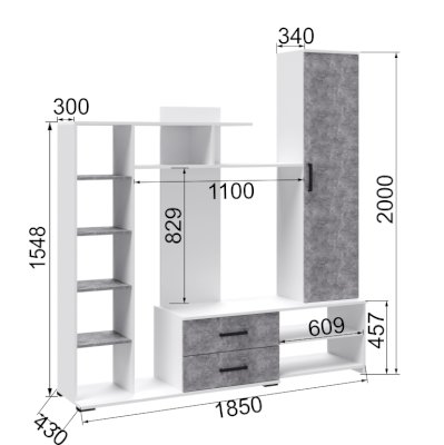 Ниша под ТВ (ШхВхГ): 1100х829х430 мм