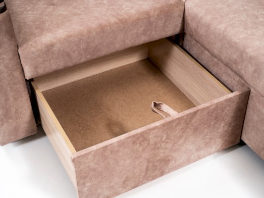 - Выкатной ящик для белья располагается в одноместной секции. Ящик выполнен из ламинированной плиты (ЛДСП), что исключает повреждение белья.