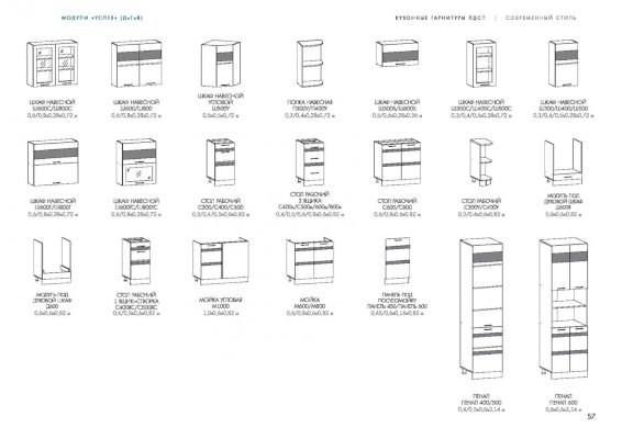 Кухня Успех изговаливается также в цветах серый/гобелен платина; серый/гобелен шампань; серый/синга жемчуг; серый/синга шампань. Модули в этих цветовых решениях вы сможете найти в нашем интернет-магазине.