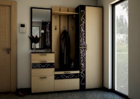 Створка шкафа может вешаться как на правую, так и на левую сторону. Шкаф имеет секцию с выдвижной штангой и полками. Для дополнительной фиксации шкаф следует крепить к стене на плоские навесы посредством дюбель гвоздей.