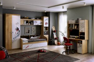 В нише и закрытой секции поместятся все учебники ребенка и обеспечат порядок на рабочем месте. Компактный и удобный прямой компьютерный стол из серии «Энерджи» может быть дополнен функциональной надстройкой. Главной особенностью данной коллекции являются современные принтерные рисунки.