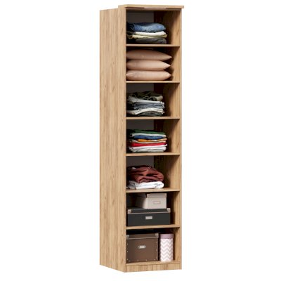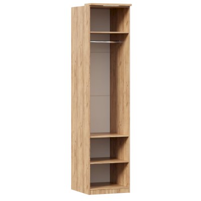 • За распашным фасадом 6 полок и штанга для одежды. Высота между полками 300 мм