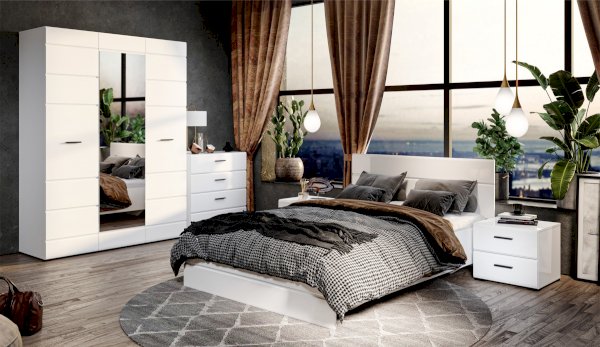 Стильный комод Йорк — оптимальное решение для спальни и гостиной. Горизонтальная фрезеровка фасадов, контрастные черного цвета ручки и задняя стенка из ХДФ, элегантный белый цвет— все это делает модель универсальной, позволяет сочетать ее с любой мебелью и отделкой. Блеск глянцевых фасадов High Gloss из МДФ наполняют комнату светом, делают ее просторнее. Ящики на телескопических направляющих, позволяют рационально использовать всё внутреннее пространство ящиков, обеспечивая удобный и легкий доступ ко всему содержимому. Мебель выполнена из экологически безопасных и надежных материалов.