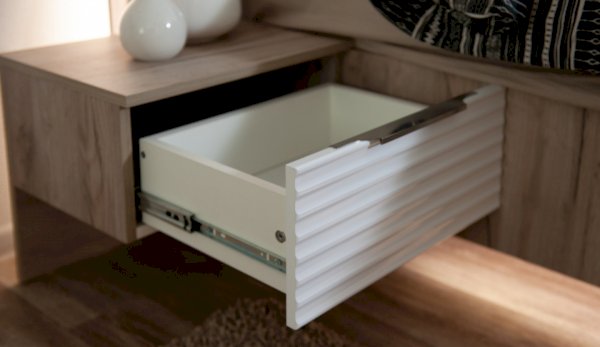 • Задняя стенка и дно ящиков вставлены в паз