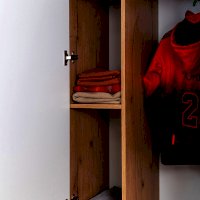 Наполнение 92 Шкафа для одежды и белья продумано до мелочей: выдвижные ящики, стеллаж для одежды и выдвижная штанга для плечиков – всё это помещается в одном модуле. Три варианта фасадов позволяет выбирать цветовое решение для дверок шкафа: заказывать их в контрастном исполнении или в монохромном. Для выбора доступны фасады Белый и Графит. Для надежности рекомендуем крепить шкаф к стене на подвесы.