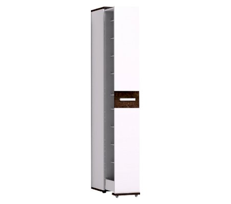 Высокая и узкая выдвижная обувница - уникальное предложение на рынке мебели. Узкая обувница поможет аккуратно расставить до 18 пар обуви, а также средства по уходу за ней. Шкаф выдвигается без усилий, благодаря выкатным роликам и шариковым направляющим полного выдвижения. Пространство внутри шкафа вентилируется с помощью небольших отверстий на крышке и дне выдвижной части шкафа. Предусмотрена право- и левосторонняя сборка модуля.