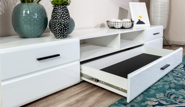Модульная система Йорк позволяет подобрать тумбу для ТВ индивидуально, исходя из Ваших предпочтений, размеров телевизора и гостиной. Тумба оснащена всем необходимым для удобства использования, выдвижными ящиками на телескопических направляющих, открытыми и закрытыми полками для медиа техники, пультов и других необходимых вещей. Выполнена из экологически безопасных материалов.
