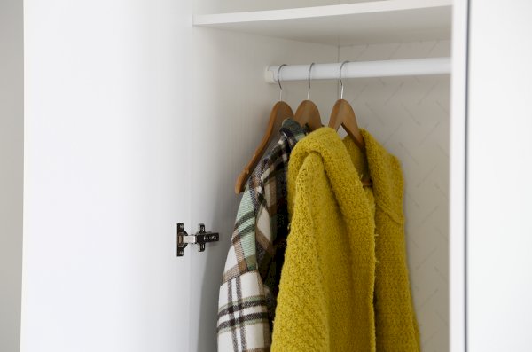 Что делает этот шкаф особенным? Его корпус изготовлен из ЛДСП белого дерева, что придает ему легкость и свежий вид. Фасады, выполненные из МДФ и облицованные пленкой ПВХ белого матового цвета, добавляют шкафу элегантности. Уникальной особенностью дизайна являются вертикальные полосы на фасаде, созданные с помощью фрезеровки. Петли с доводчиком гарантируют бесшумное закрывание фасадов, залог вашего комфорта. Удобные металлические ручки облегчают открывание и закрывание шкафа, а штанга для одежды и полки дополнительно обеспечивают удобное размещение и организацию внутреннего пространства. Ножка пластиковая черного цвета дополняет общую композицию, а ее высота в 20 мм придает шкафу легкость и стабильность.