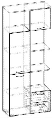 Применение задней стенки из ЛДСП (в ячейках с ящиками и фасадами) позволяет использовать данный стеллаж для зонирования пространства (чтобы предотвратить опрокидывание, необходимо обеспечить крепление стеллажа к стене).