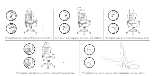 Модель оснащена механизмом качания «топ-ган» с регулировкой под вес пользователя и возможностью фиксации в рабочем положении.