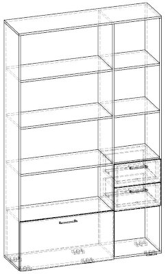Применение задней стенки из ЛДСП (в ячейках с ящиками и фасадами) позволяет использовать данный стеллаж для зонирования пространства (чтобы предотвратить опрокидывание, необходимо обеспечить крепление стеллажа к стене).