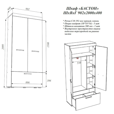 Шкаф Бастон (Эра) - за 12 440 руб. в Новокузнецке. Купите на сайте novokuzneck.onlinemarketmebeli.ru или по телефону 8(800)505-30-63 уже сегодня! Уточнить наличие, комплектацию, актуальную цену можно бесплатно у менеджера ежедневно. Закажите Шкаф Бастон (Эра) до конца акции! Доступна покупка в кредит, рассрочку. Доставим со склада или на заказ.