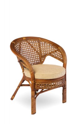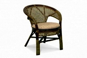 Кресло из натурального ротанга с подушкой и плетеной спинкой Пеланги.