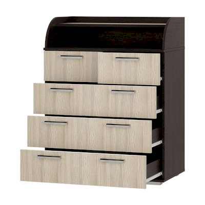 Комод Стандарт №1 отличается своей практичностью. Наряду с выдвижными ящиками, он имеет открытую полку, расположенную сверху, значит у вас появится дополнительное место для хранения вещей.