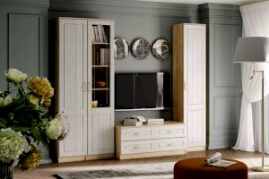Тумба Оливия НМ 040.48 Ф может быть частью набора или выступать в качестве самостоятельного элемента гостиной. На широкой столешнице достаточно места для размещения и ТВ, и предметов декора. Тумба оборудована четырьмя выдвижными ящиками для хранения книг, документов и аксессуаров.