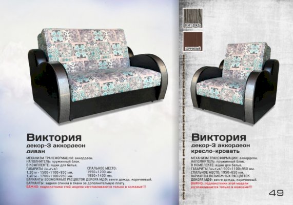 Кресло аккордеон Виктория с декором-3 (Асмана) - за 29 931 руб. в Новокузнецке. Купите на сайте novokuzneck.onlinemarketmebeli.ru или по телефону 8(800)505-30-63 уже сегодня! Уточнить наличие, комплектацию, актуальную цену можно бесплатно у менеджера ежедневно. Закажите Кресло аккордеон Виктория с декором-3 (Асмана) до конца акции! Доступна покупка в кредит, рассрочку. Доставим со склада или на заказ.
