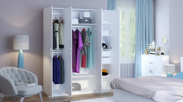 • В левой секции две штанги под короткие вещи и одна жесткая полка.