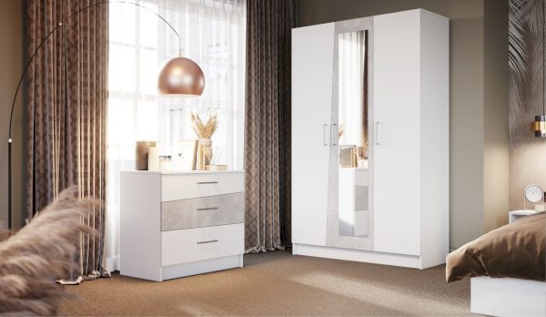Вместительный комод Антария из ЛДСП с асимметричными скошенными линиями фасадов вносит свободу и движение в жилое пространство, делает интерьер более сложным и необычным. Нейтральные цвета декора универсальны для любого стиля интерьера. Три выдвижных ящика на роликовых направляющих поместят в себя одежду, личные вещи и аксессуары. Верхнюю крышку можно использовать для декора или фотографий. В спальне он легко превращается в туалетный столик, достаточно повесить над ним зеркало.