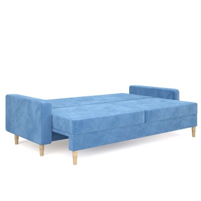 Современный прямой диван из популярной на сегодня серии мебели в "скандинавском стиле". Отличительной особенностью данной модели являются ножки из массива дерева. Что придает дивану легкости и утонченности. Бельевой ящик выполнен из ЛДСП с кромкой. Механизм трансформации "Пантограф" позволяет без особых усилий разложить диван в полноценную кровать с удобным и ровным спальным местом. В основе спального места находится качественный поролон, придающий поверхности упругость и долговечность. В комплекте идут стильные подушки.