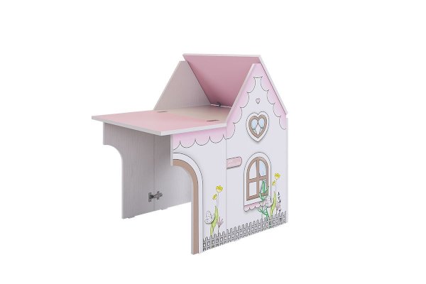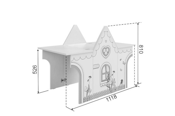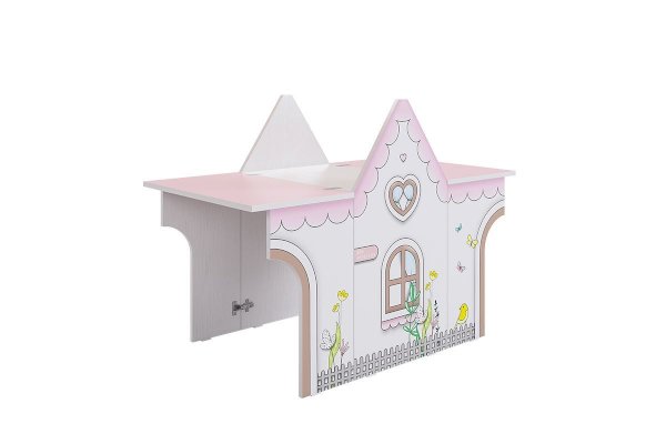 Стол раскладной займет мало места в комнате. Крыша домика легко раскладывается и превращается в стол, как для 1 ребенка, так и для 2-х детей. Так же может служить местом для игры в куклы, в прятки и другие всевозможные забавы. При закрытой крыше- это прекрасный стеллаж для хранения предметов творчества.