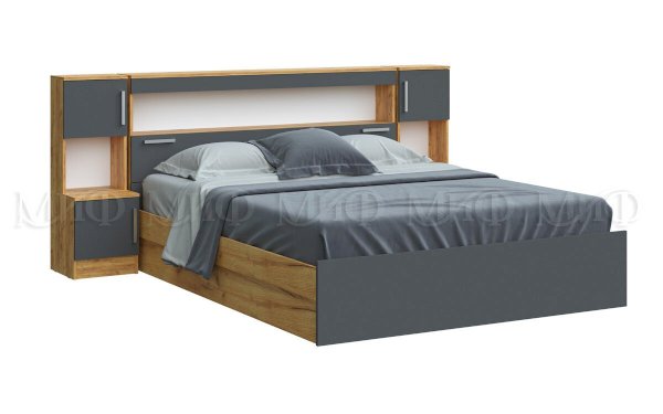 Кровать 1,6м с надстройкой с тумбами