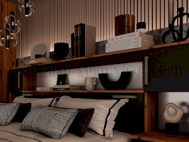 В самом названии этой спальни видится что-то мягкое, удобное и уютное. Интересное и функциональное дизайнерское решение – кровать с надстройкой – служит дополнительным местом для хранения вещей.