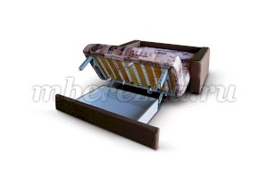 Механизм трансформации «аккордеон» позволяет без усилий разложить диван. Спальное место с ортопедическим основанием для придания телу удобного положения во время сна. Под диваном расположена ниша для постельного белья. Боковины имеют деревянные подлокотники, предохраняющие материал от механического трения. Чехол дивана съемный, периодически его можно стирать.