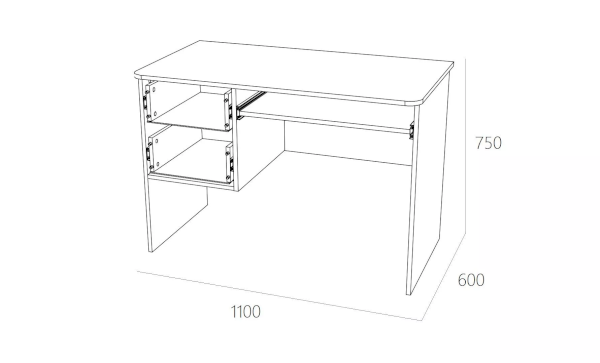 Стол для компьютера НМ 009.19-05 М2 поможет обустроить комфортный учебный уголок в детской. На рабочей поверхности модуля достаточно места для размещения стационарного компьютера, ноутбука. Удобная выдвижная полка для клавиатуры позволит сохранить место на рабочем столе. Закругленные углы столешницы делают эксплуатацию модуля безопасной для ребенка и взрослого. По окончании занятий ребенок сможет убрать книги и тетради в выдвижные ящики для поддержания порядка на рабочем месте.