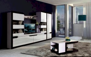 Гостиная «Ронда» – модульная мебель в современном стиле, выполненная в виде горки. Благодаря сочетанию 2-х контрастных декоров – белого и венге с глянцевыми и матовыми поверхностями, а также оригинальному дизайну двухсторонних стеклянных витрин и декоративному приему стыковки модулей, «Ронда» выглядит эффектно и стильно. Завершают внешний облик белые глянцевые ручки итальянского производства. Модель включает 6 самых востребованных модулей для гостиной комнаты: шкаф для одежды с возможностью добавления 2-х дополнительных полок, 2 шкафа многоцелевых с витринами для посуды, тумбу, полку навесную и стол журнальный. Мебель оснащена петлями с доводчиком, благодаря которым двери закрываются плавно и бесшумно, так что, можно не волноваться за стеклянные фасады. Цвет «белый/венге»