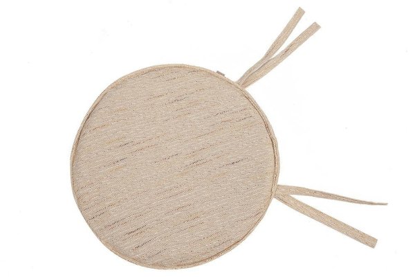 Сшита из ткани "рогожка" бежевого цвета. Наполнитель - поролоновая крошка. Размер ШхВхГ 470 х 40 х 470 мм