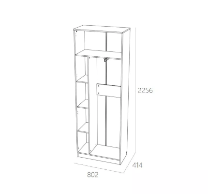 Внутри модуля предусмотрена выдвижная штанга для одежды на вешалках. Компактная, но очень вместительная модель шкафа с пятью полками, позволит разместить вещи и игрушки.  Классические глухие фасады надежно защитят содержимое шкафа от влаги и пыли.