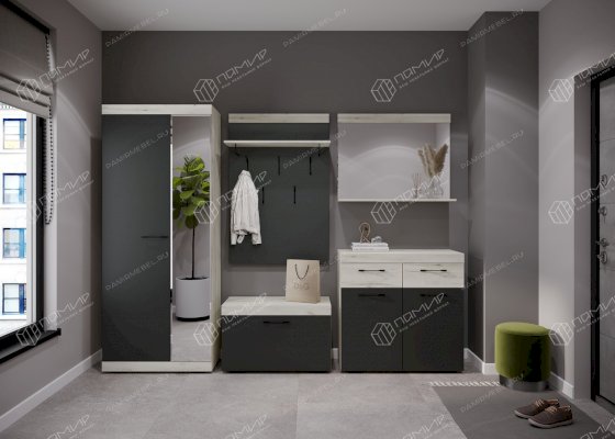 Модульная прихожая Соната Дуб Крафт белый/Антрацит (Памир)